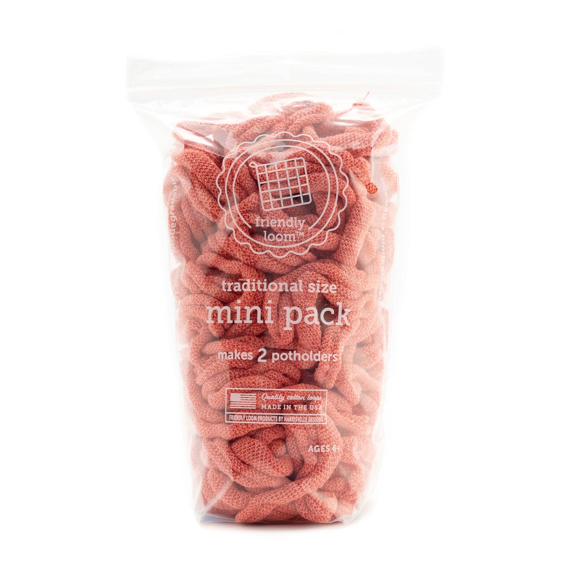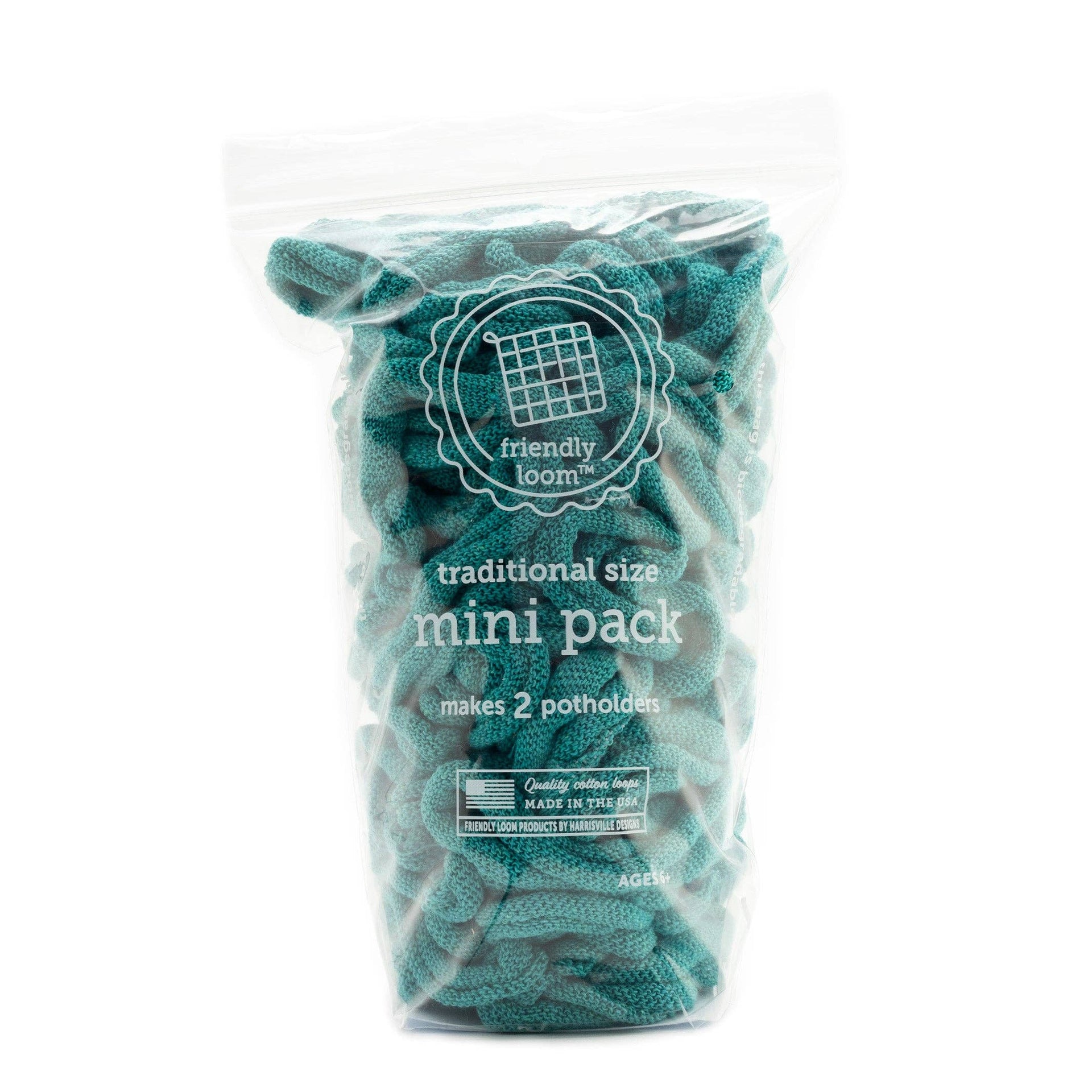 Make potholders with specific colors Whether you're making a single-color potholder or working with a specific color scheme (like school colors or matching your kitchen decor!), this Mini Pack has you covered. Think of it like a small skein of yarn for knitters—perfect for adding a pop of color to your next project. These packs are ideal for those moments when you just need a couple of potholders! Each pack is hand-packed and carefully weighed to ensure you have enough loops for 2 potholders, plus a few extras.