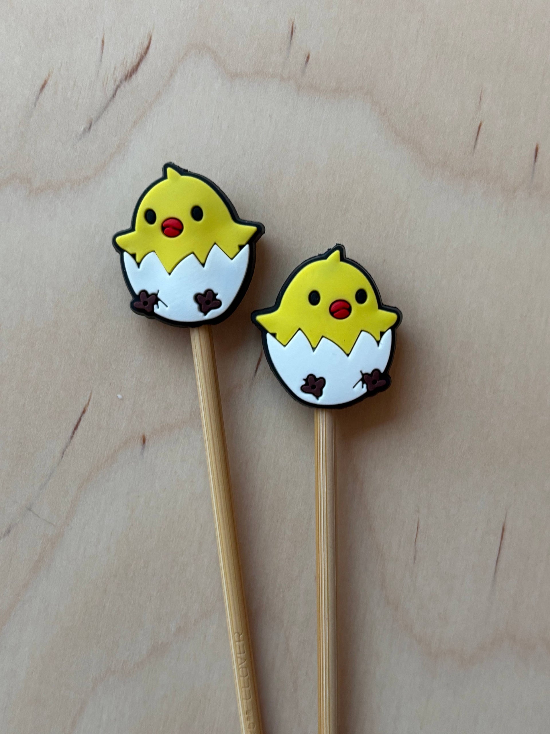 These soft, slightly squishy knitting needle point protectors are so fun to use! Made of soft PVC, they keep your stitches secure and defended against the chaos of the universe. Simply stick your knitting needle points into the hole in the point protector and your stitches will stay secure!