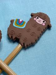 These soft, slightly squishy knitting needle point protectors are so fun to use! Made of soft PVC, they keep your stitches secure and defended against the chaos of the universe. Simply stick your knitting needle points into the hole in the point protector and your stitches will stay secure!