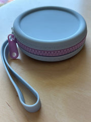 Introducing the Squishcase—ready for all your yarnie adventures outdoors and on-the-go. Secure your notions in this protective mini case. Measures approx. 3.5” diameter x 1” width. Wrist strap opening approx. 8 in