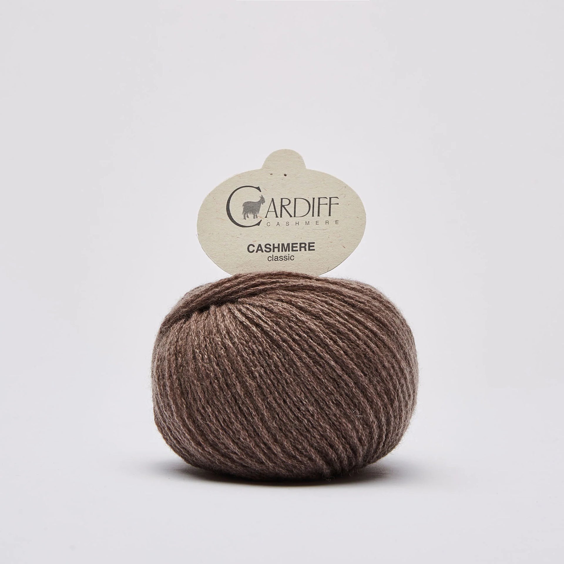 Cardiff Cashmere Classic is a joy to work with and a delight to wear! Regarded as DK-weight, this yarn is produced in Biella, Italy, using some of the finest cashmere sourced from Inner Mongolia, China. The fibers that make up this luxurious yarn have been washed and fulled, so no additional fiber treatment is needed. With fiber lengths of 40mm, this yarn resists pilling even after multiple washes. It comes in stunning colors and is perfect for heirloom items and accessories.