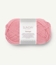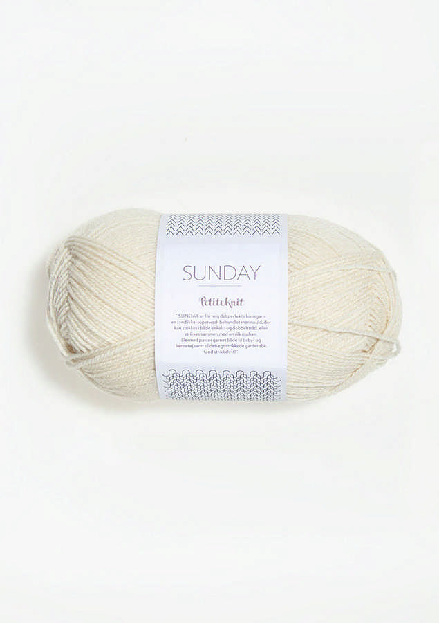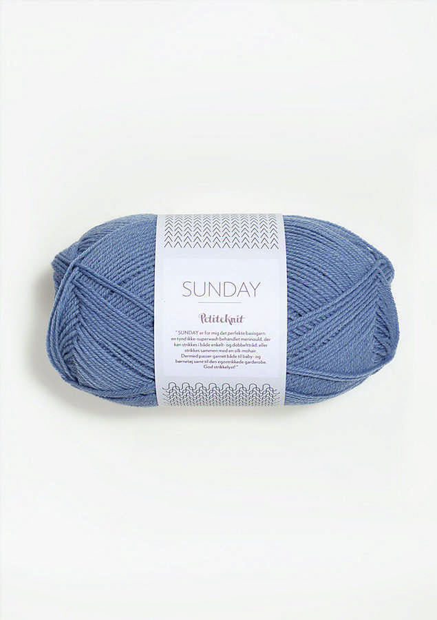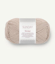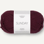 SUNDAY is a soft Merino wool yarn that is non-superwashed. It is a plied, fingering weight yarn that boasts great stitch definition. It can be knitted single, held double, or held with mohair.
