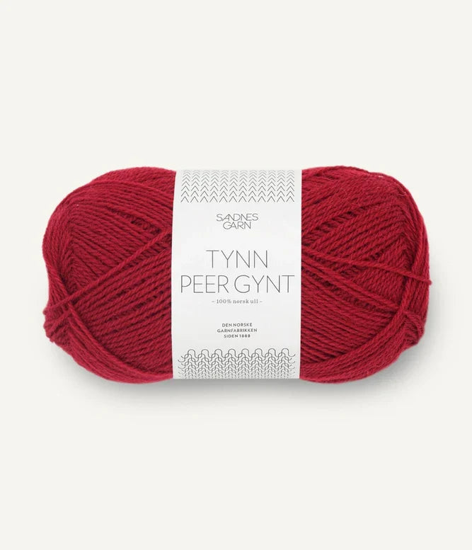 Tynn Peer Gynt is the fingering weight version of Peer Gynt, a 100% Norwegian wool that is not superwashed. This rustic wool is very durable and great for colorwork, cables, and textured stitches. Ideal for hard wearing garments.